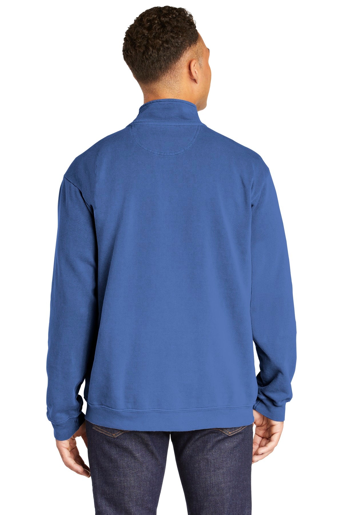 Rear View of Blue Jean COMFORT COLORS Ring Spun 1/4-Zip Sweatshirt. 1580