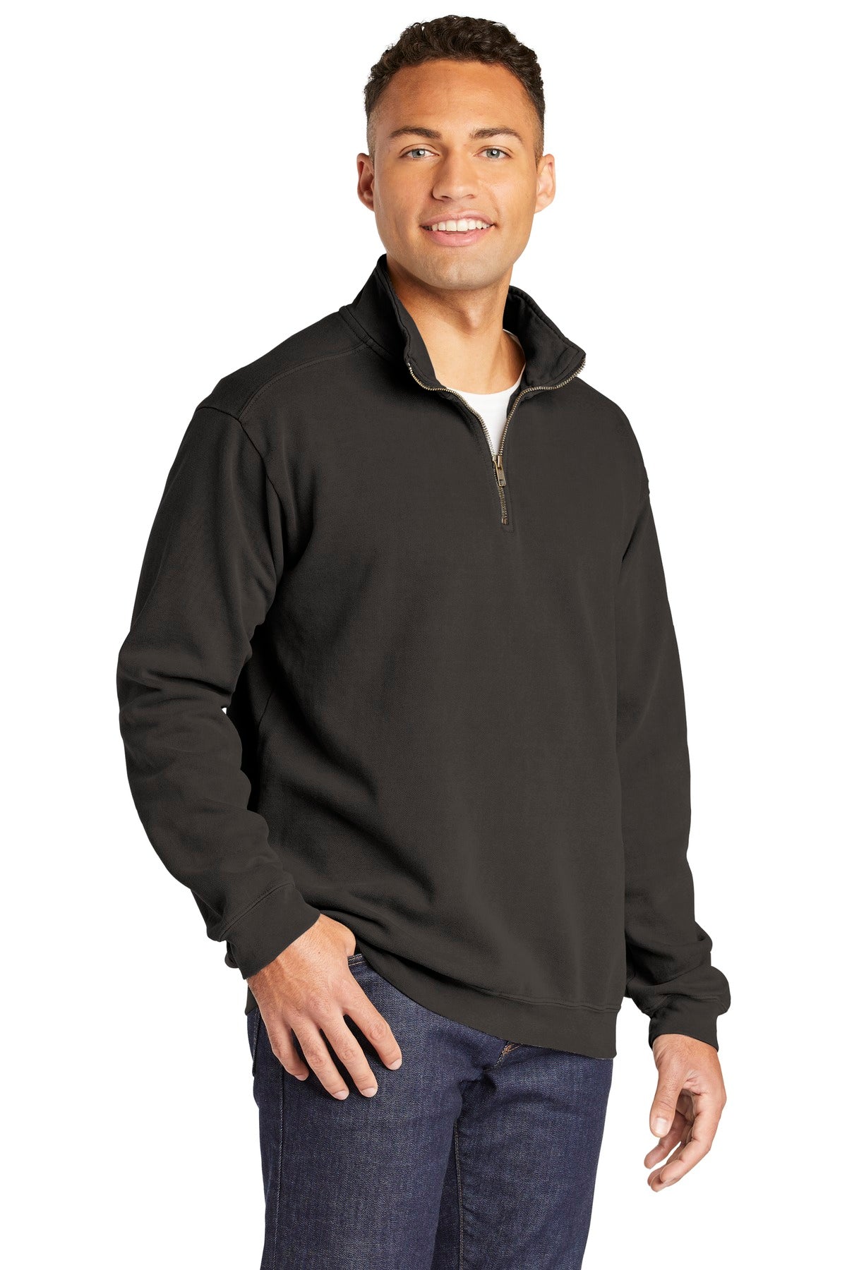 Front View of Pepper COMFORT COLORS Ring Spun 1/4-Zip Sweatshirt. 1580