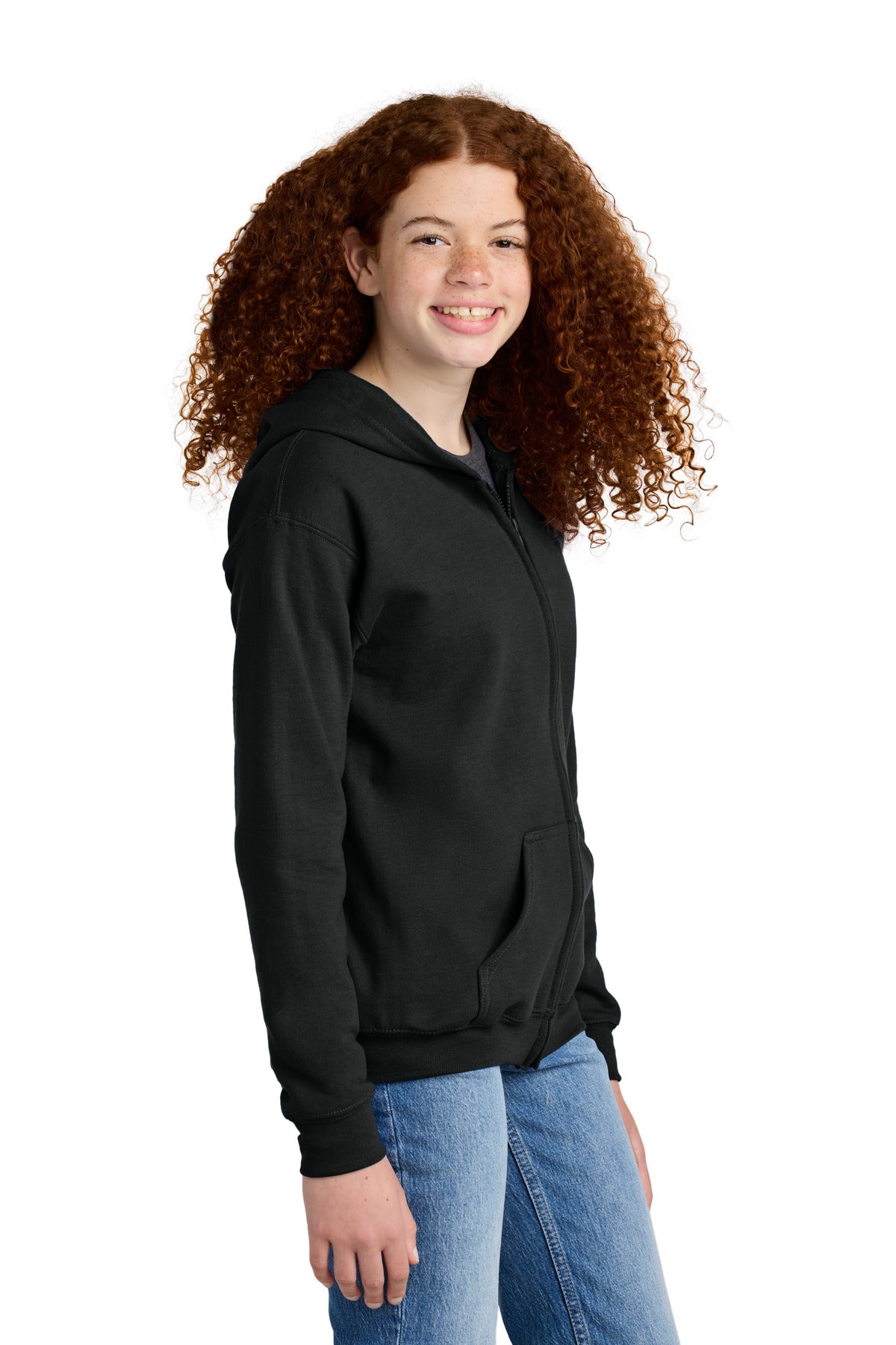 Black Gildan Youth Heavy Blend Full-Zip Hooded Sweatshirt. 18600B