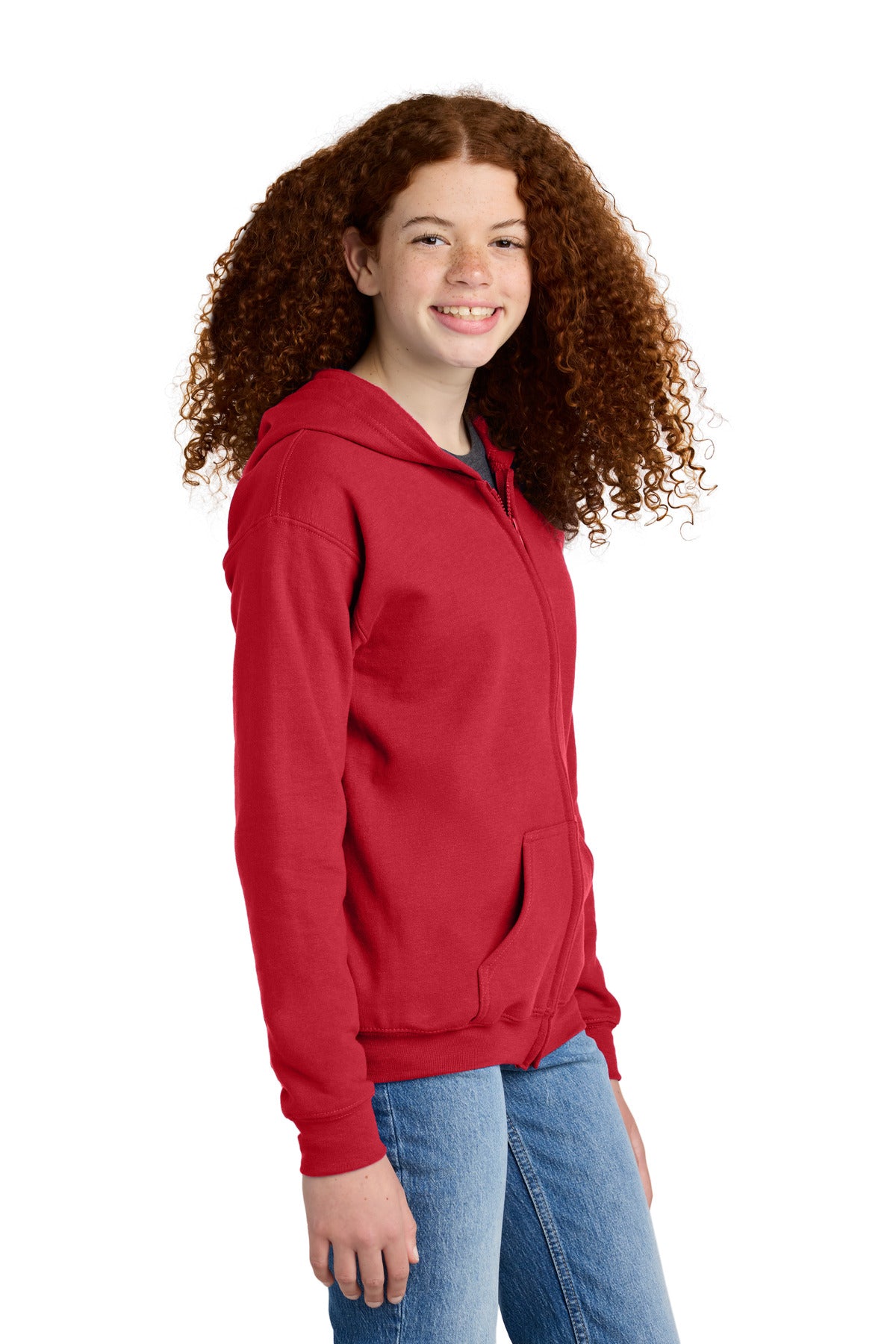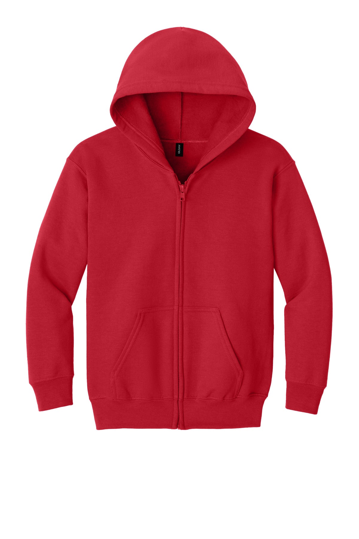 Red Gildan Youth Heavy Blend Full-Zip Hooded Sweatshirt. 18600B